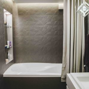 •  Облицювання санвузлів керамічною плиткою (стіни, підлога), зокрема облицювання ніш, улаштування прихованих лючків тощо